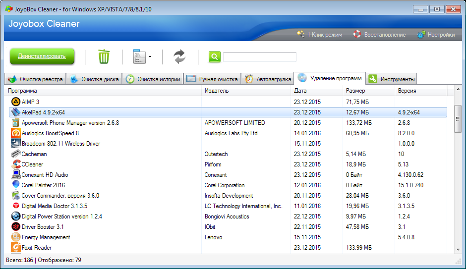 Joyobox Cleaner - мощная, но безопасная программа для очистки реестра, мусорных файлов, списков истории, а также владеющая рядом дополнительных возможностей. Отличный инструмент для ухода за Вашим компьютером. Многофункциональный, быстрый, безопасный и легкий в освоении инструмент.