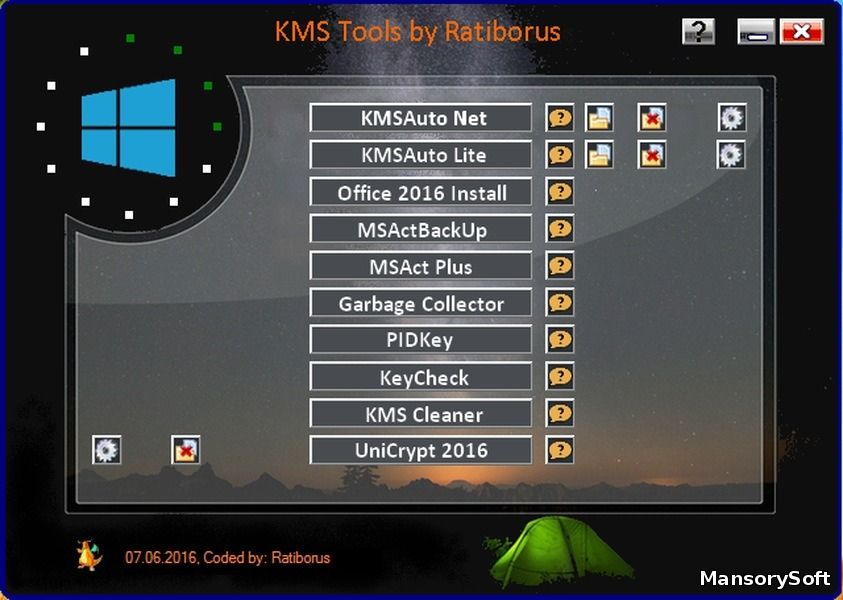 Все основные программы от Ratiborus для активации Windows XP, Vista, 7, 8, 8.1, 10, Server 2008, 2008 R2, 2012, 2012 R2, Office 2010/2013/2016 в одной сборке.